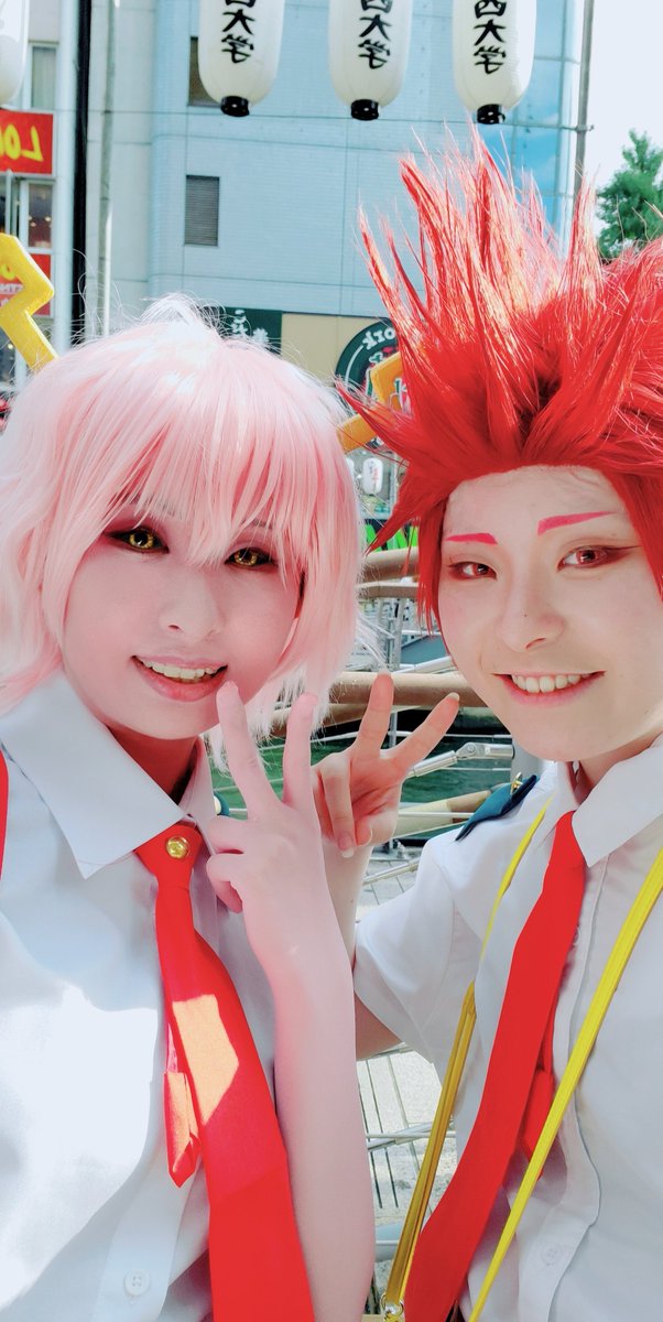 めちゃめちゃ可愛いカフェ行ってきました〜! 店内も店員さんもスイーツも全部可愛かったです!!あとなんといってもピンク!!!ピンクといえばあしみなでしょう︎💕︎ 男前切島は、似合わなすぎて逆に可愛かった #PINKKAWAII #道頓堀コスプレ祭 #アコスタ道頓堀