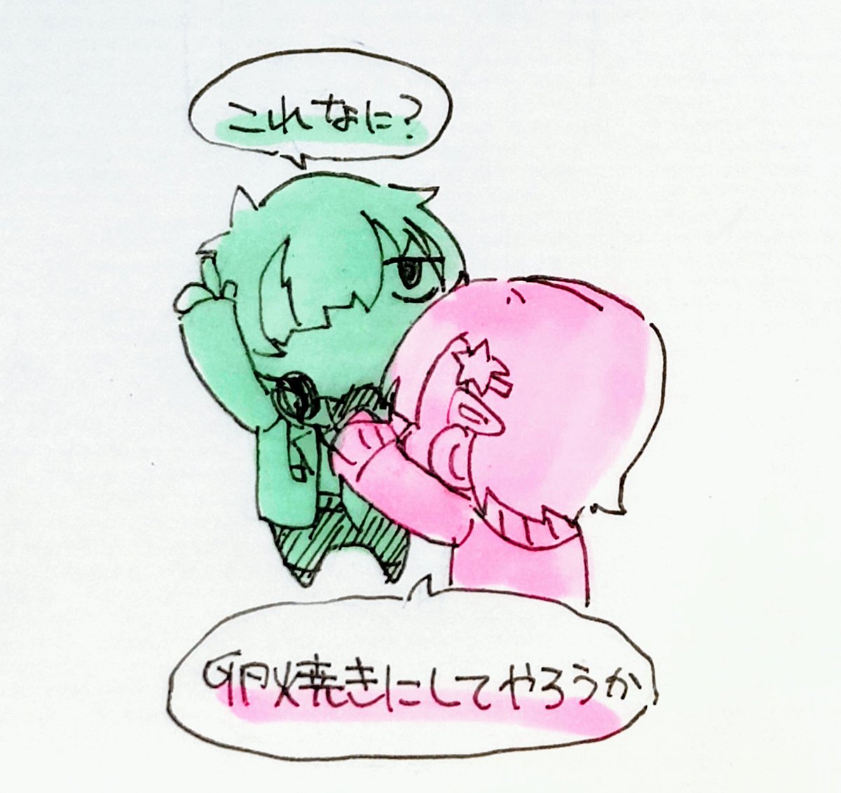 #メメリ絵 素敵なネタお借りしました...!🙇♀️ ※スペースの関係でセリフを一部省略しております twitter.com/mmntrcppbot/…