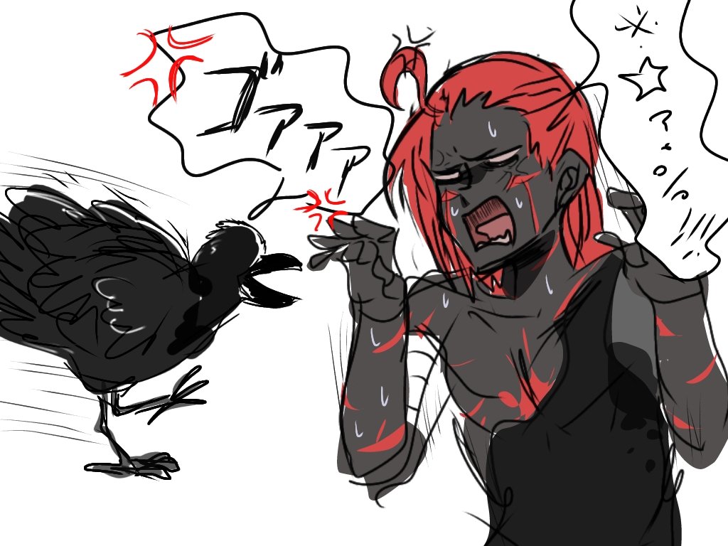 結局カラスとのメンチ切り合いには勝ったんでしょうか #シャレとる絵