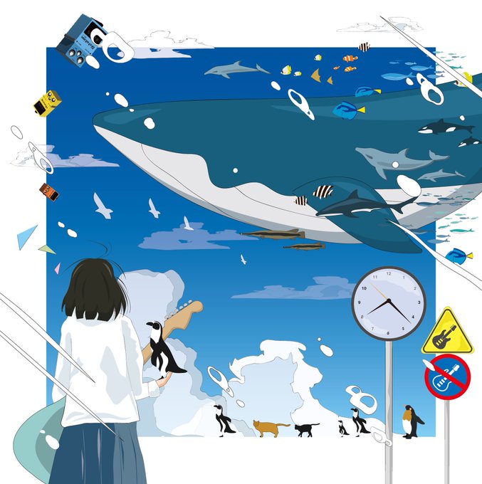 鯨散歩 #illustration #illust #絵 #イラスト #イラスト好きな人と繋がりたい #青春 #風景画 #イラスト練習中 #女の子イラスト #絵描き