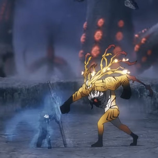 165 944 Galahad's silhouette appears briefly for a second when Ritsuka uses his shield against Goetia... that's the outline of his cape and you can see his legs too 22/08/24 11:45