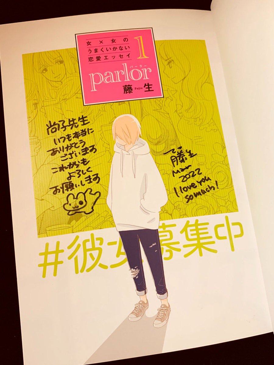 343 1097 同居人藤生の3/25の新刊「女×女のうまくいかない恋愛エッセイ Parlor 」サイン入れて貰って一冊頂きました😊💖冒頭からガツンと面白くて思い出しても笑ってしまいます🌟シロウさんは底が見えない。 22/03/21 20:22