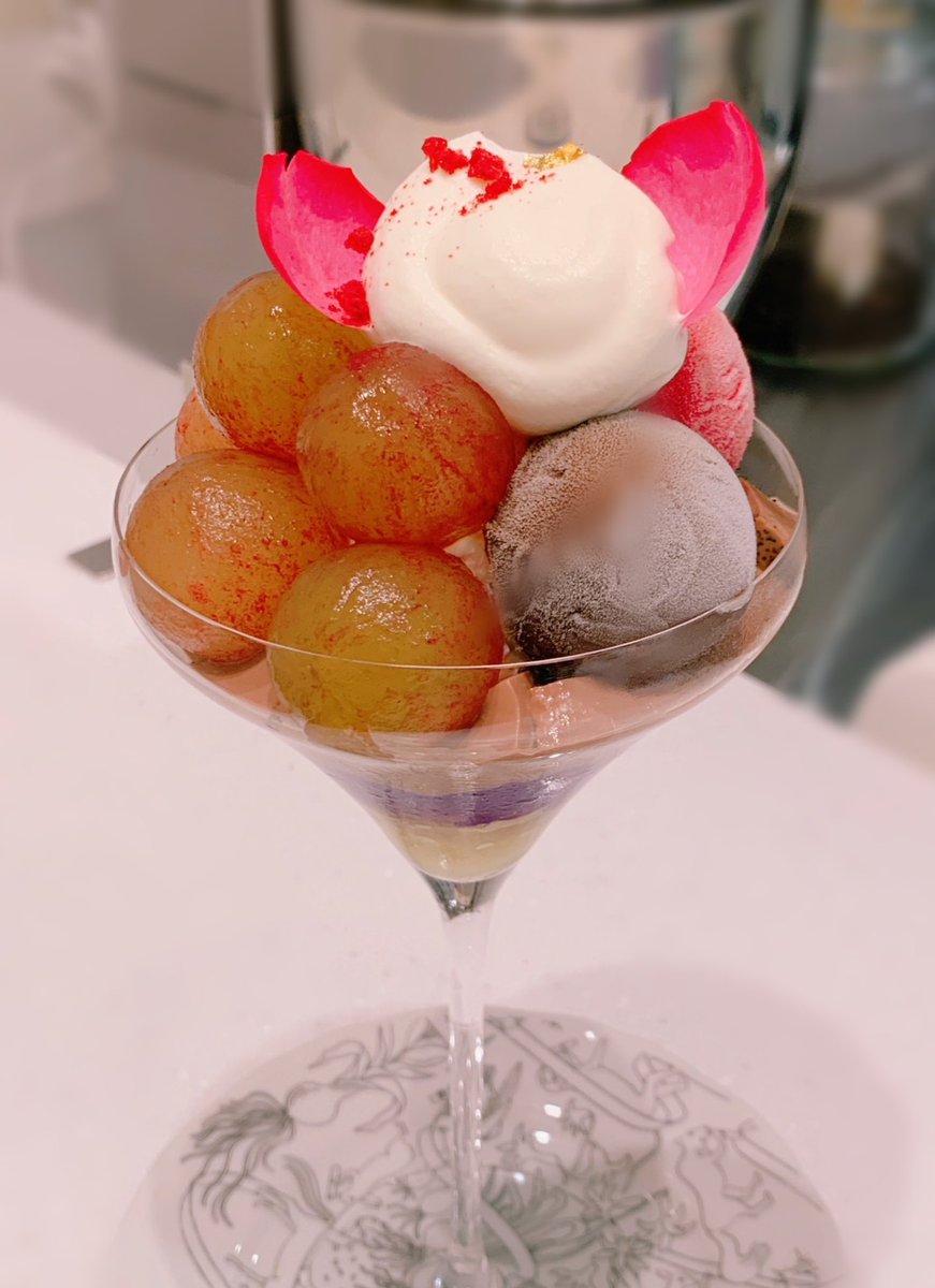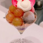 誕生日に藤生にパフェをご馳走して貰いました🍨「桃と苺のパルフェ」と「ピオーネとアールグレーショコラのパルフェ」です。どちらも美しいだけではなくとっても美味しくてフルーツも最高ジェラートも最高クリームも最高で大満足でした😊❤🍑❤🍇❤