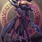 skebリクエストありがとうございました! 遊戯王OCGより ブラック・マジシャン・ガール(ブラック・マジシャン風の衣装) アレンジ衣装を考える際、脚に黒タイツを履かせるかどうかで一生悩みました(実際、両パターン描いた)