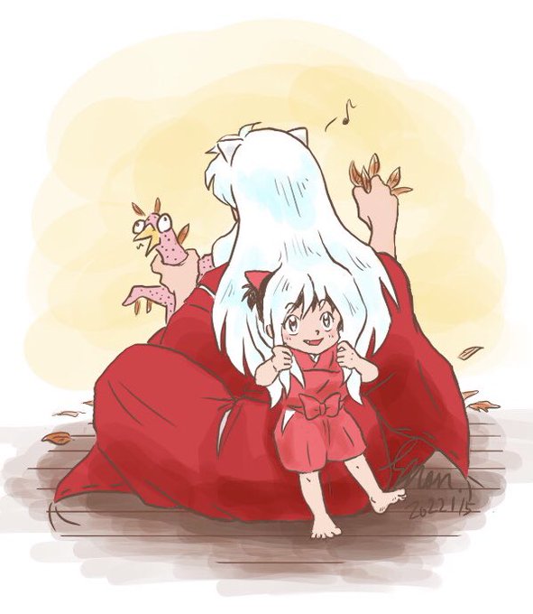 犬夜叉家子育て日記(捏造) とでもしておこうか。 母をよく見てるもろ子。 ビビる父犬。 もろは可愛いよ。。 #半妖の夜叉姫 #犬夜叉 #かごめ #もろは #高橋留美子 #fannart