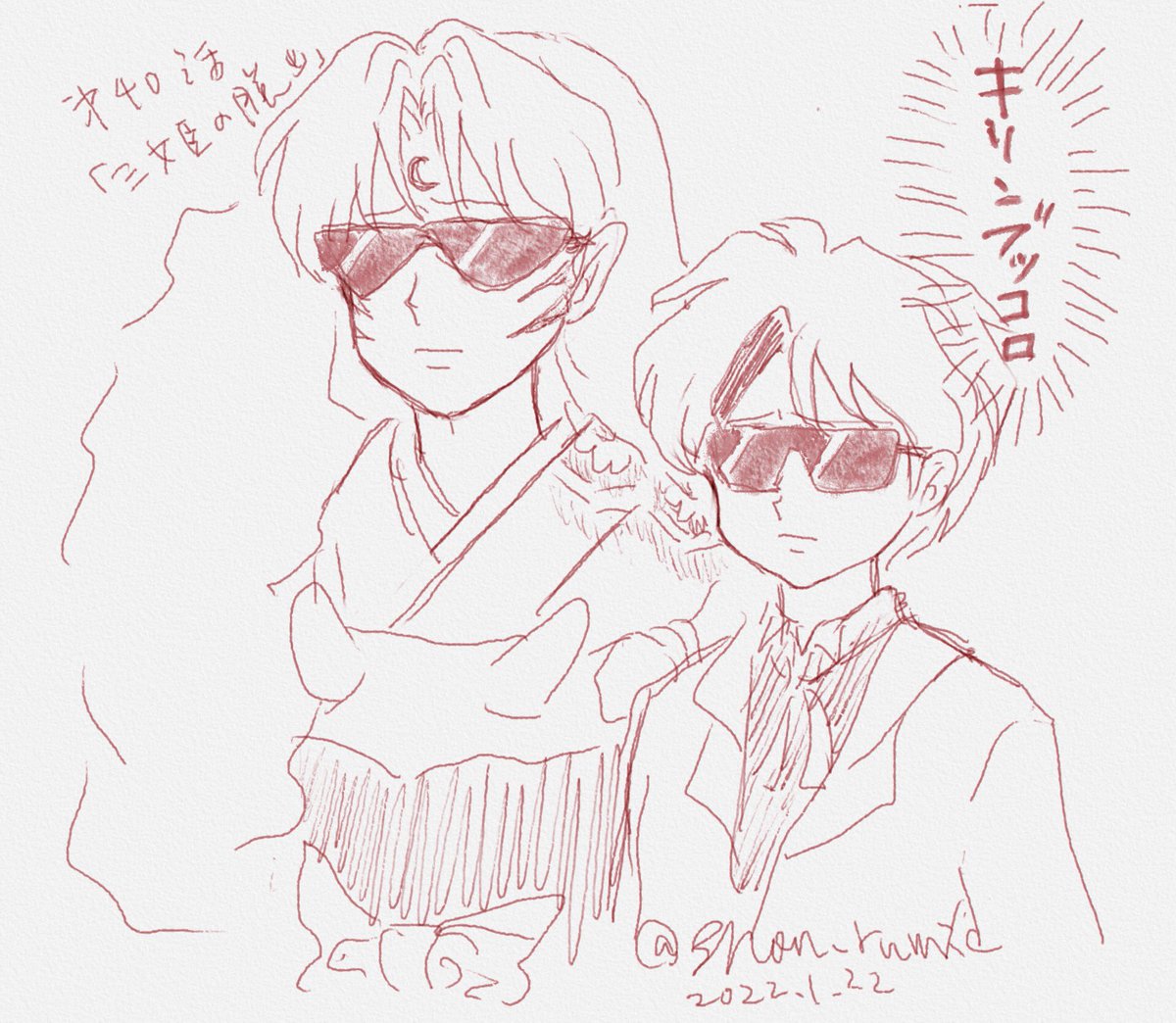 この3人の絡んでるとこ待ってます。OVAでもいいから😭 双子には逆らえず渋々きつね妖術で翡翠への悪巧みに手を貸す七宝さん。狐妖術師範とかになってないかな。現代だったら呑み友達とかでいて欲しい3人。 #高橋留美子 #fanart #犬夜叉 #半妖の夜叉姫 #金烏玉兎 #七宝 #翡翠