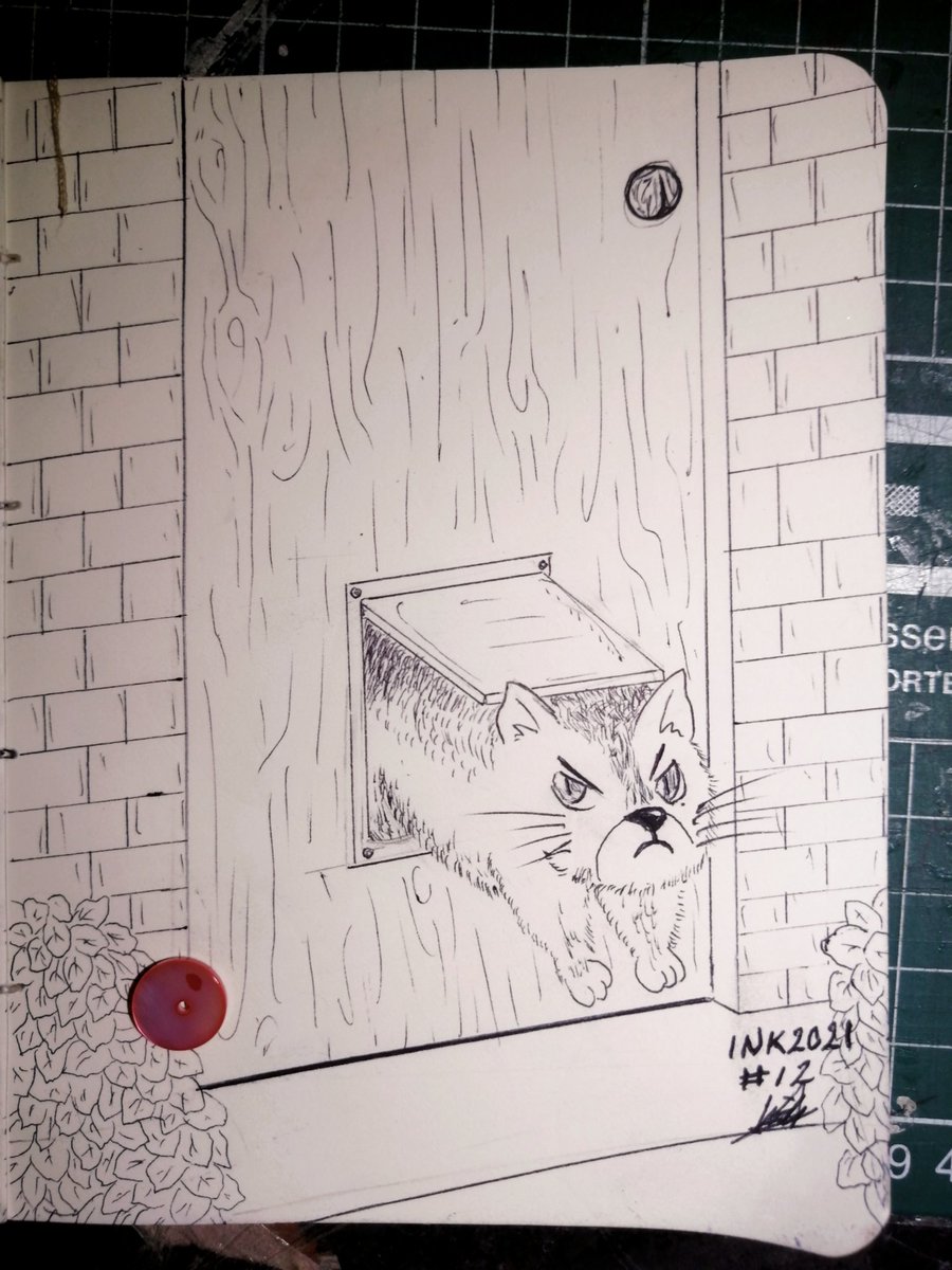 Día 12 del #inktober - Atascado Lo primero que se me ocurrió un gato gordo xD #inktober2021 #Inktober2021day12 #inktoberchallenge #inktobermx