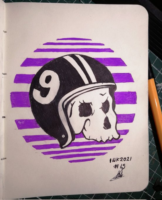 Día 15 del #inktober - Casco Me compre plumas de colores así que le sacare provecho xD #inktober2021 #inktober2021day15 #inktobermx