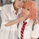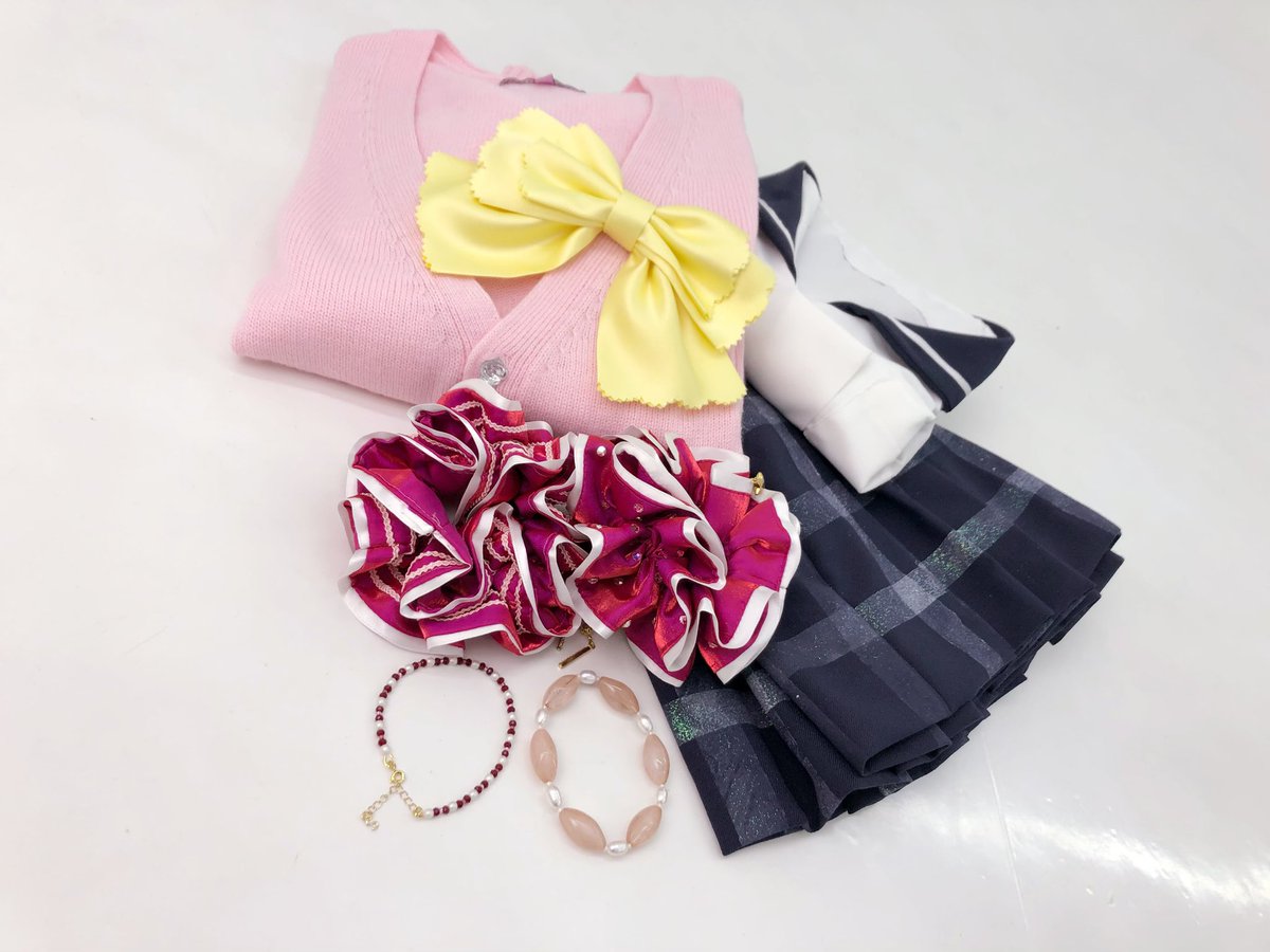 6th連れてってもらうBeitPのブルゾン作らせてもらいましたよ〜💠 みのりさん💐イメージのピンクに選んでもらったピエールと恭二カラーのリボンで編み上げにしてます✌️😌 4thで作った悠介のブルゾンとお揃いなのよ〜(今回私は着ません) #裁縫プロnight #sideM手芸部