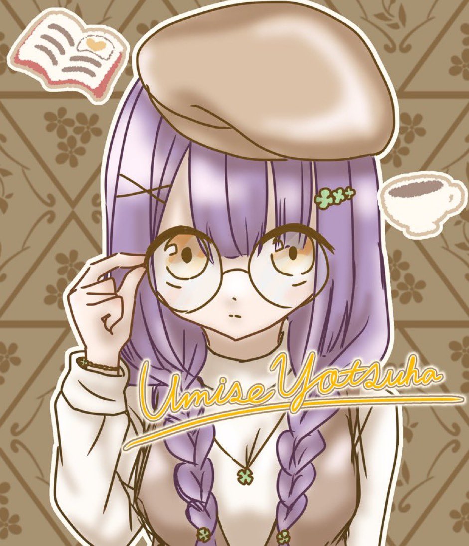 2 9 #Yotsuh_Art 私服衣装妄想らくがき🍀 コーヒーと本が似合いそうな感じ☕️📚 丸メガネと下三つ編み、絶対うみせに似合うと思うんだ〜〜〜! 23/06/24 22:42