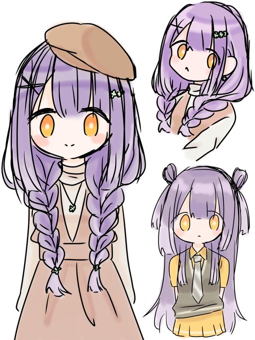 #Yotsuh_Art 私服衣装妄想らくがきその2(&ノーマルうみせ) 他の人の下三つ編みうみせも見たいな…… ツリーは丸メガネありver.です