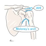 【肩関節の画像所見】 ・AHI →肩峰骨頭間距離 ・Moloney's arch →肩甲骨関節窩と上腕骨がつくるアーチ 腱板損傷や骨折、脱臼などをみるときに必要なポイント! #アナトミーイラスト twitter.com/yuh_catcher2/s…