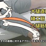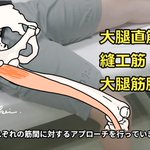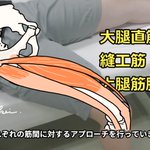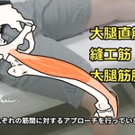 ・対側下肢の屈曲で腰椎過伸展を抑制 ・腹直筋に力を入れることで骨盤後傾 大腿直筋の起始を考えると骨盤を後傾させるとストレッチされる #アナトミーイラスト twitter.com/Beshisei/statu…