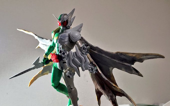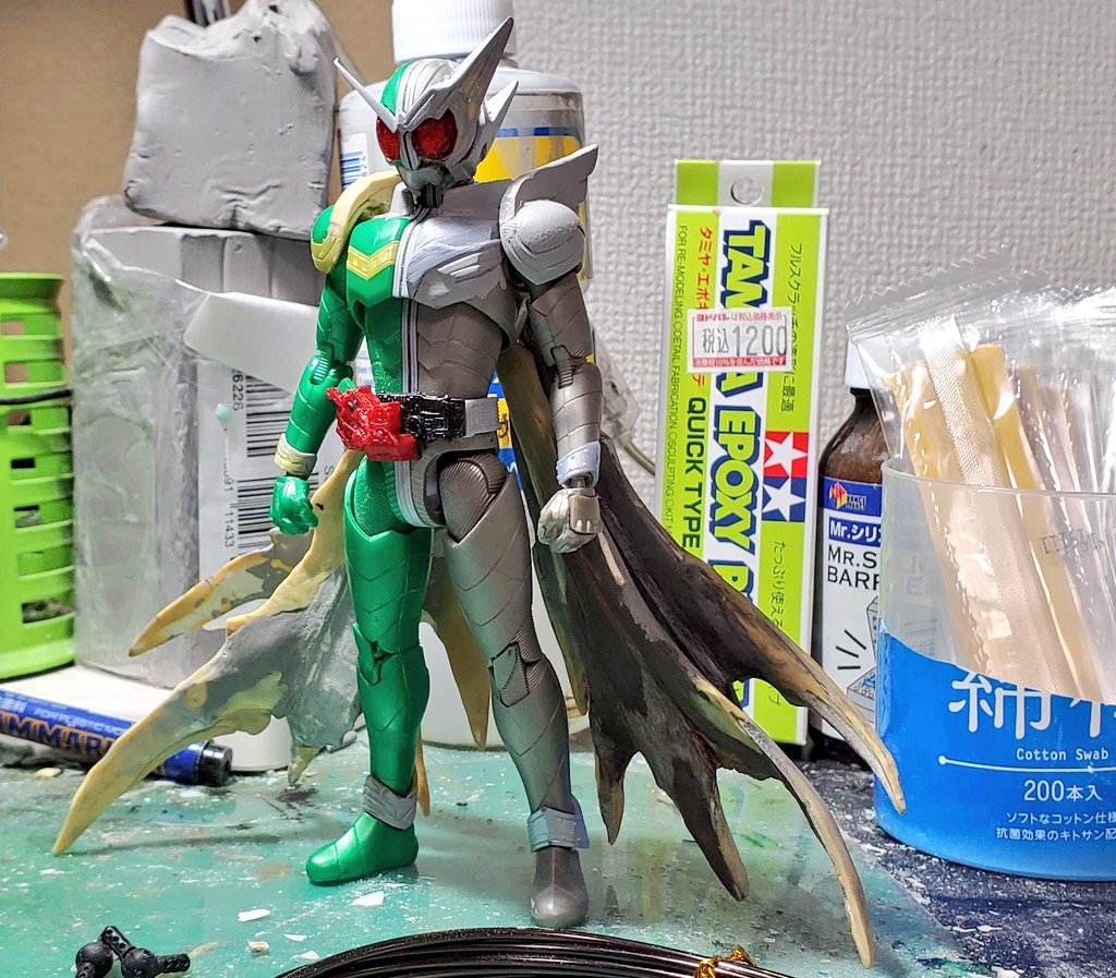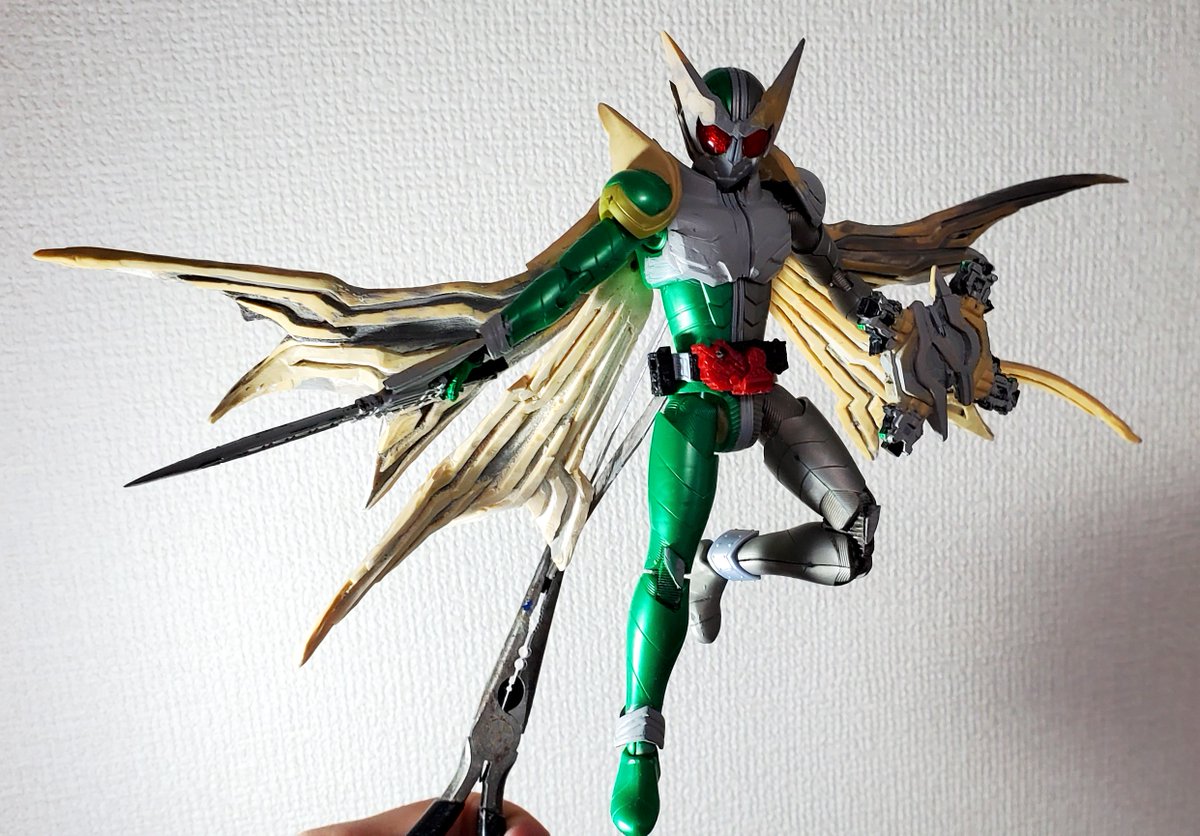 #週刊自慢の婿ライダーをつくる 第4号 もう週刊でもなんでもないですが。 羽マントが重すぎてアレなので通常時2枚で能力解放時?は4枚にしようかと思ってます。肉抜きを埋めたりしてちまちま進めてます。 #仮面ライダーW #仮面ライダーナスカ #ニチアサフィギュア改造部 #造って遊ぼ