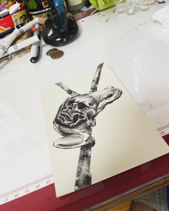 0 15 アートワーク🙇♂️ #アート #デザイン #カエル #お絵描き #イラスト #スケッチ #ボールペン #ボールペンアート #スカル #デザイン 22/07/26 22:28