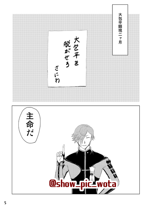 3/21閃華頒布予定、大鶯本。A5/28P/全年齢向け/300円。大包平の真剣必殺の話と、猫の話(再録含む) 大包平と猫 | 梢野 #pixiv pixiv.net/artworks/74724… 画像4枚