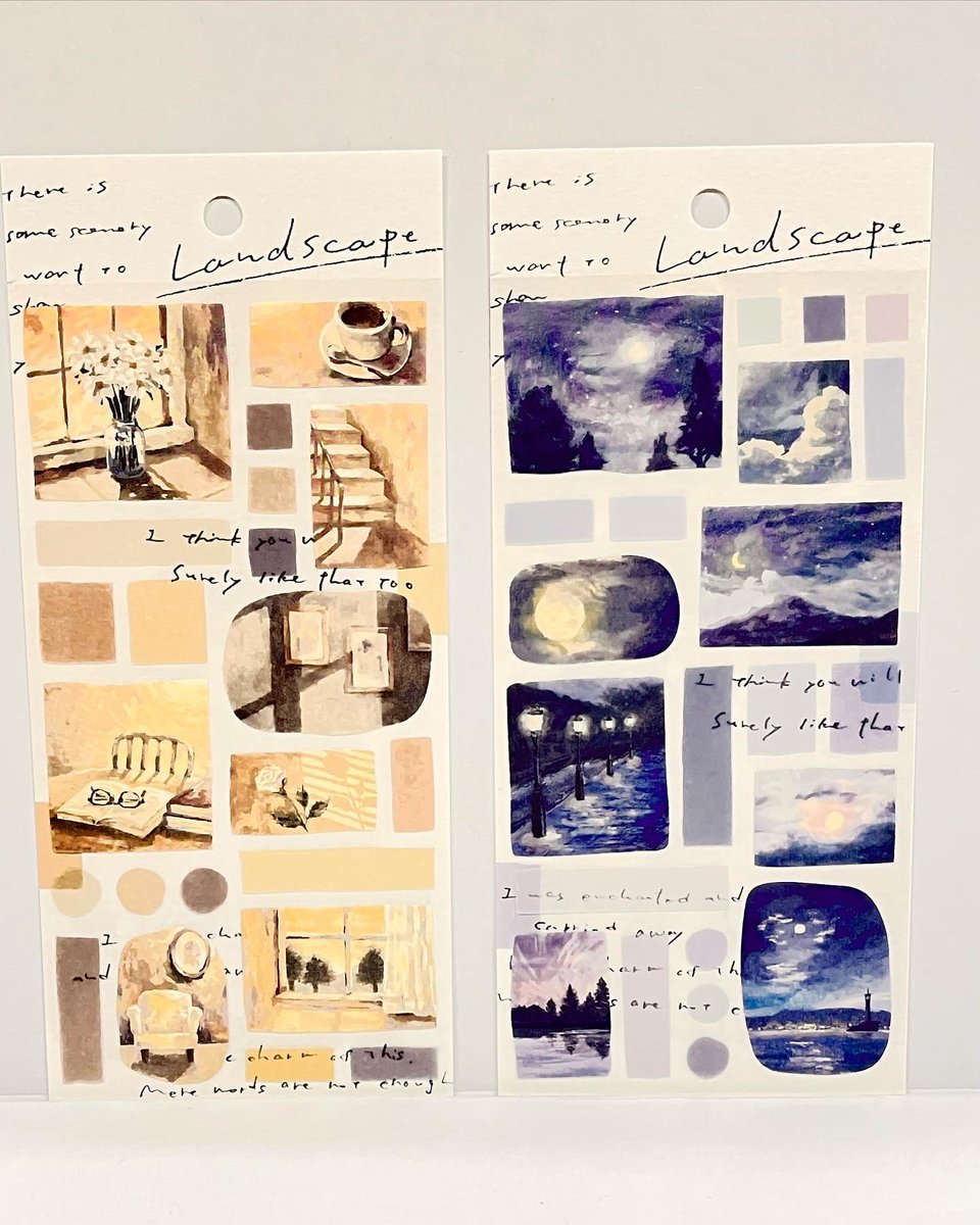 まるで風景画のような #イラストシール お迎えしました🙌🙌✨ #ランドスケープステッカー 単色ピースは 透け感があるため 風景に重ねて貼るのが おススメです😇✨ 穏やかな色合いでまとまった 雰囲気のある➰🌱 デコレーションを、お楽しみ頂けます🎶 #マインドウェイブ