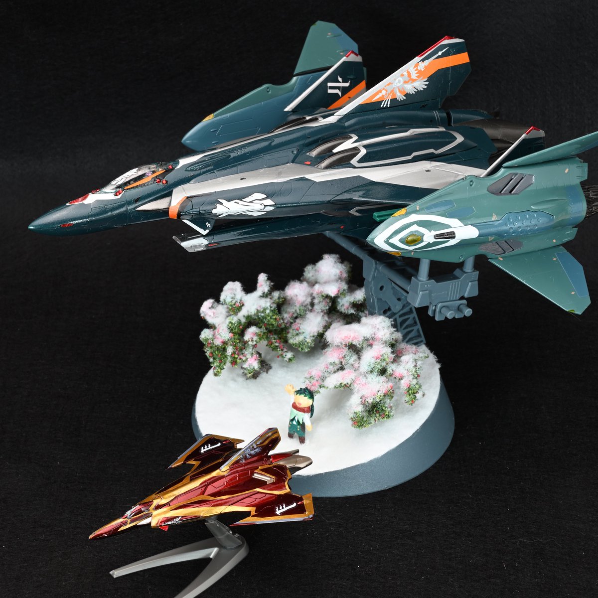 作品名:エクスデール村の空に 塗装・デカール2回目、ジオラマ・パテ造形初めての初心者ががんばりました。 空を飛ぶカシムと、それを見守る息子のアレクです。TV版22話をイメージしつつ、きっとこんなシーンもあったのでは…と希望を込めました🍎 #マクロスモデラーズ応募