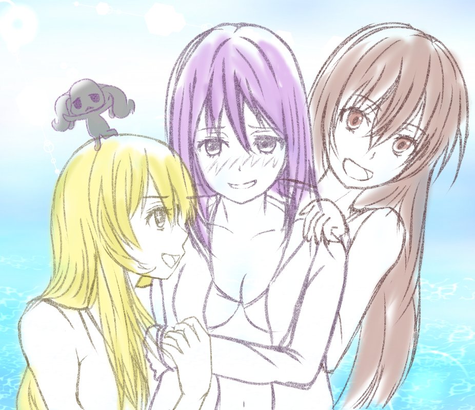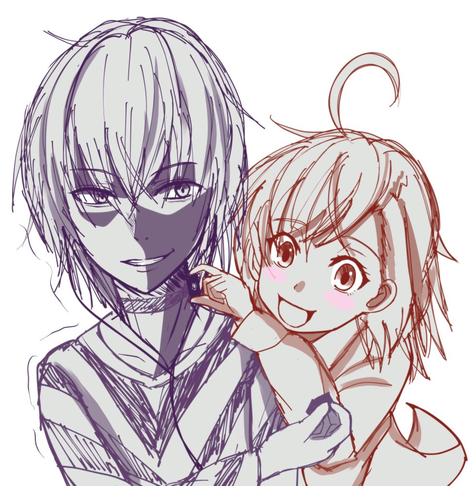 #禁書版深夜の真剣お絵かき60分一本勝負 #第10回禁書ワンドロ お題【才人工房】 前描いてたラクガキに加筆。真ん中の子が一番照れ屋の気がする。