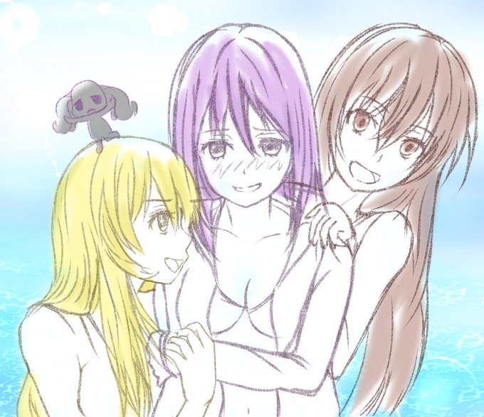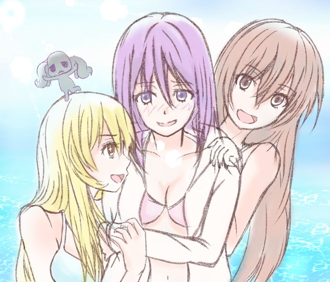 8 53 #禁書版深夜の真剣お絵かき60分一本勝負 #第10回禁書ワンドロ お題【才人工房】 前描いてたラクガキに加筆。真ん中の子が一番照れ屋の気がする。 20/06/20 23:19