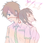 28 113 「君の名は。」公開から今日で4年経ったそうです☄️ 超久しぶりに瀧と三葉を描きました。 20/08/26 06:56