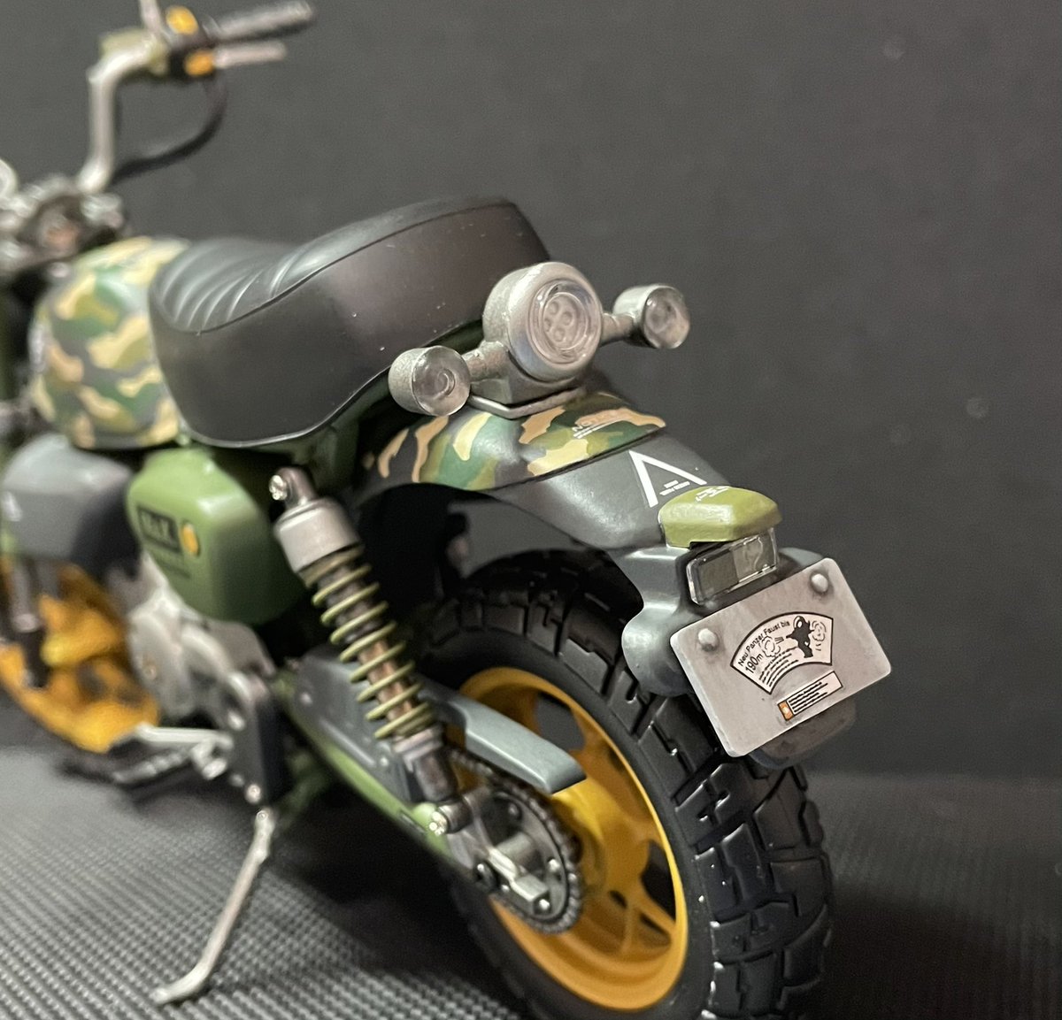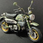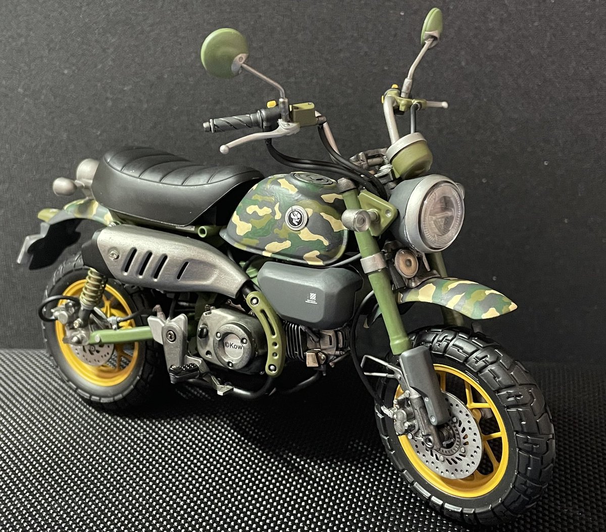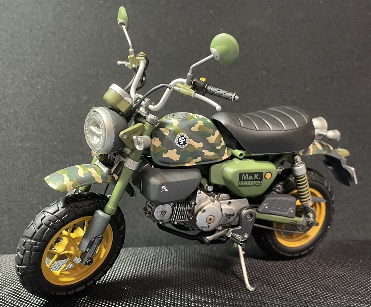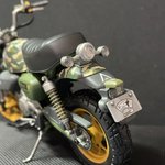 タミヤ1/12HONDAモンキー125完成! 人生初バイクプラモでしたがMa.K.仕様の迷彩カラーにしてみました。タミヤの技術ってすごいですね。 こんなバイク乗ってみたいなぁ(*ФωФ) #タミヤ #マシーネン #マシーネンクリーガー #maschinenkrieger #モンキー125 #スケールモデル #HONDA