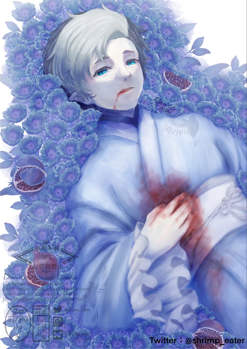 1 7 イラスト集に入れる絵のチラ見せ。 華葬シリーズ:「 柘榴 」 #イラスト #potofu #AdobeFresco 23/06/02 19:36