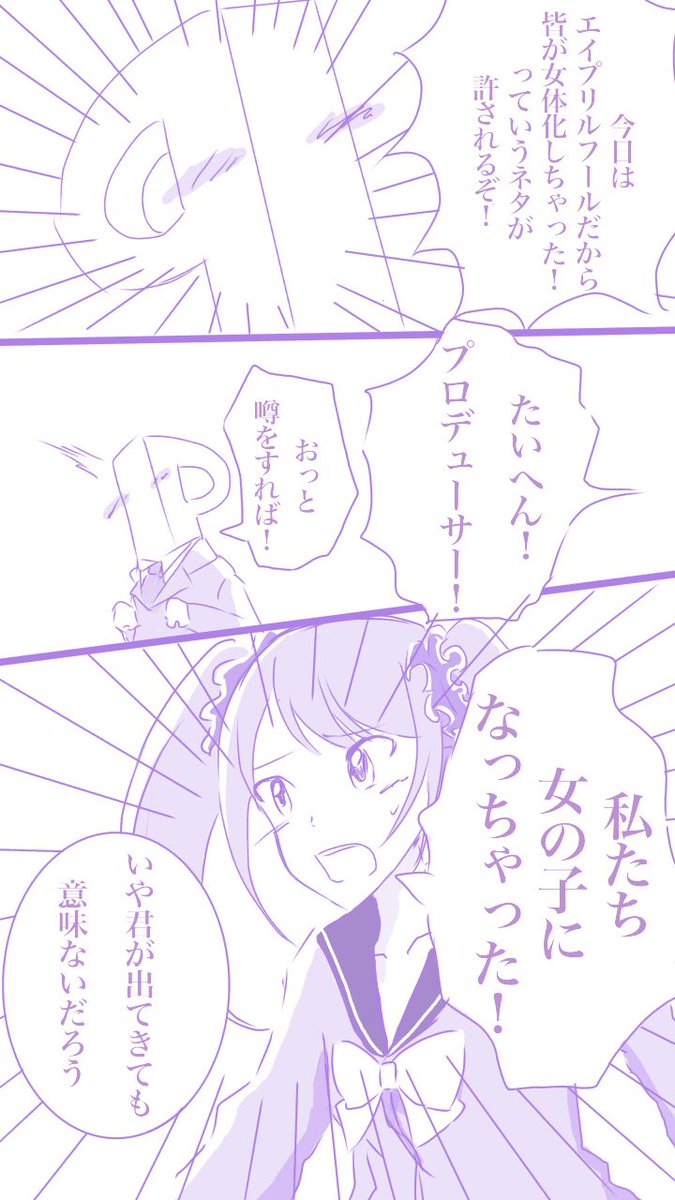 #サイドエムのギャグ漫画載せてください ⚠️女体化と越境あり⚠️ エイプリルフールに友だちに見せるためだけに描いたもの