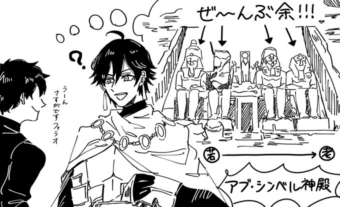 バレイベで巨大石像が出てきていますが、英霊たちの中でもそれ系のやつ作られた人沢山いるでしょ〜と思ってぱっと思いついたのがこのお方…オジマンディアス…いやラムセス2世… すごいよねえ「これ、ぜーんぶ余!!!」だもん