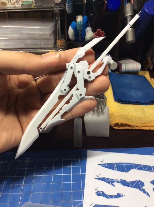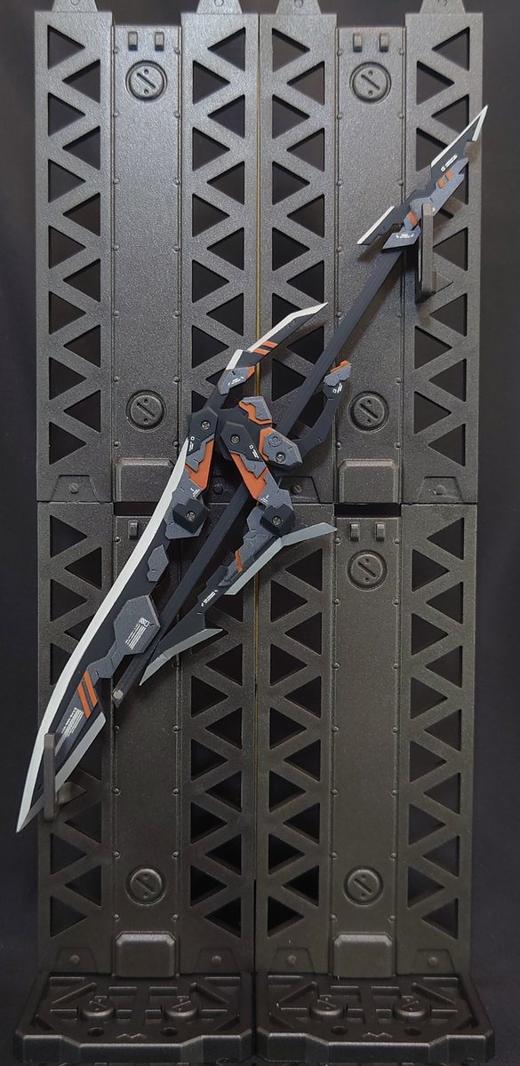 「合体機構搭載可変剣 ソルディノーチェ」 鎌ではなく、剣をメインに据えた大型可変武器です! 圧倒的ボリュームを持つ大型可変武器でありつつ、背部にウイングとして装備可能な機構を持つ皆さん大好きな武装に仕上げました! #たけつま屋 #さつスクラッチ