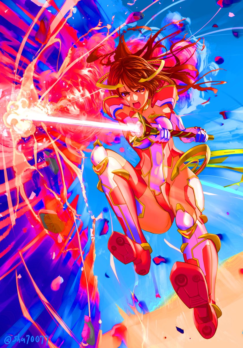 美山椿芽【スクスト2】 今年の描き初めです 新年なのでめでたい感じを出したくて若干やかましくしました 切ってるのはマッシブオブリ的な巨大エネミーです 絵で説明できてないのが恐縮ですが 今年もよろしくお願いしますm(_ _)m pixiv pixiv.net/artworks/10442… #スクスト2