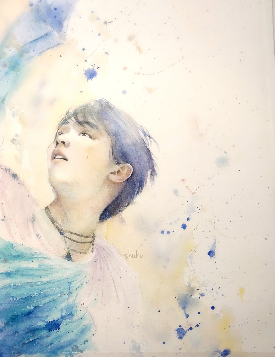 あの夏へ (小海途さんお写真より🙏) やっと描けた…😭 突っ込みところは多々あるけど これで良しとしちゃう #羽生結弦 #羽生結弦選手が今日も元気で幸せでありますように #羽生クラスタ絵画部 #YuzuruHanyu𓃲 #水彩画