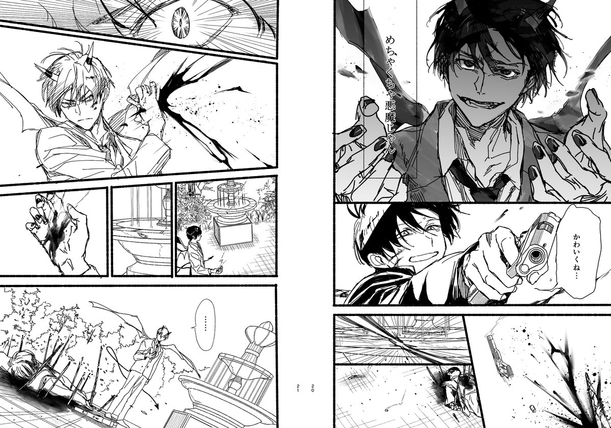 デビカラ VS 神父おそ 支部では何故かサイズばらばらだったり、背景一部抜けたりしてる(本ではちゃんと入ってる)シーン