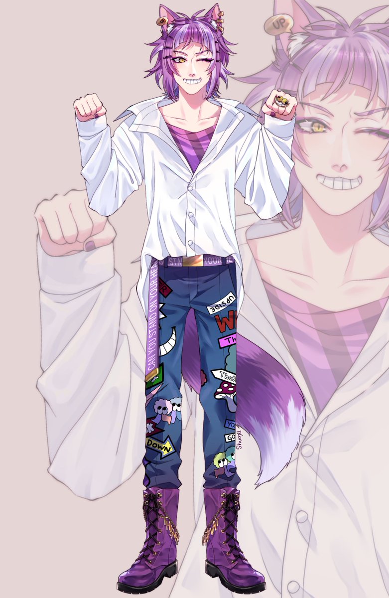 I participated on a Twisted Wonderland collab where I had to draw Che'Nya 💜💛 I love his design sm aaa #twistedwonderland #chenya #Cheshire #twistedwonderlandfanart #fanart #animefanart #animedrawing