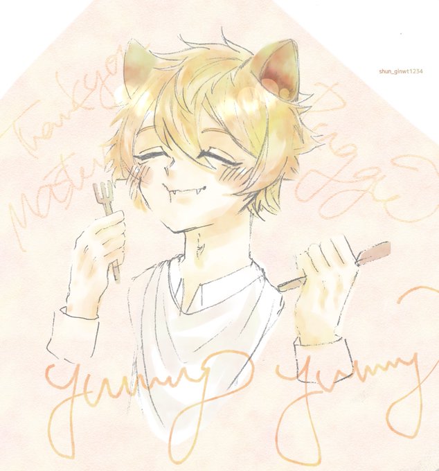 マスターシェフありがとう〜の気持ち(大遅刻) ラギーくんが口いっぱい料理を頬張ってもぐもぐしてるのが可愛かったのでサバナクローに1億点!!!(幻覚) #twstファンアート