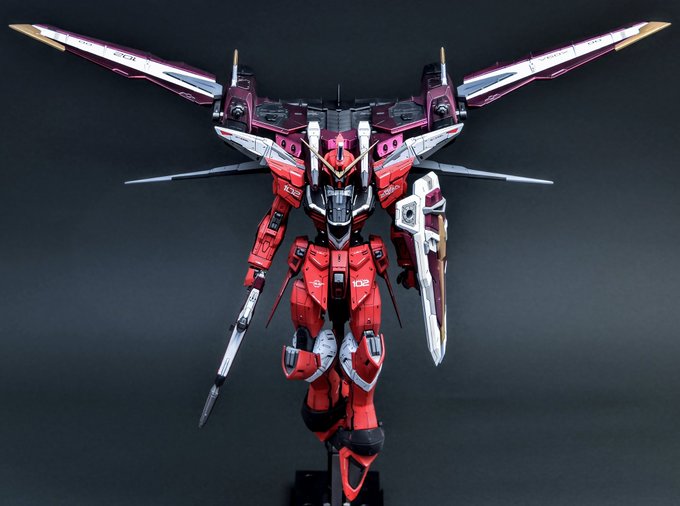 #今年も残りわずかなのでプラモやガレキの2023を振り返る作品を1枚貼る 復帰作というのかな、約4年ぶりの完成品。ずいぶん間があいてしまったけどめちゃくちゃカッコいいジャスティスができたと思う