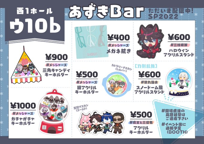 【通販】あさって5/8(月)21時ごろから、 #にじそうさく07 にて頒布したグッズをBOOTHへ追加します~よろしくお願いします🎏 ※発送までお時間を頂くことがあります ※ステッカーは少量ですので先着ですご了承ください ▸azukibar.booth.pm