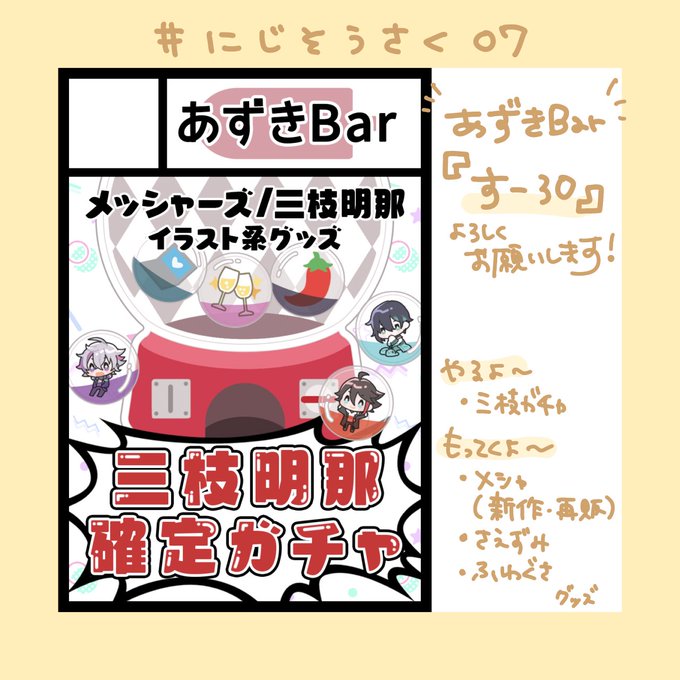 #にじそうさく08 【D-07-08】 あずきBar のサークル情報です。 checklist.familiar-life.info/?e=bhabh97&cir… にじそスペース出てました!よろしくお願いします💪💪💪わくわく