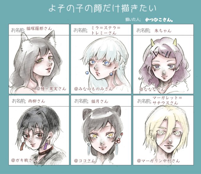 #よその子の顔だけ描きたい お借りした皆さんありがとうございました! デジタルに慣れたい心とどうにかアナログの慣れたニュアンスに捻じ曲げられないかという心が鬩ぎ合いながらの着彩!絵に表れております😂