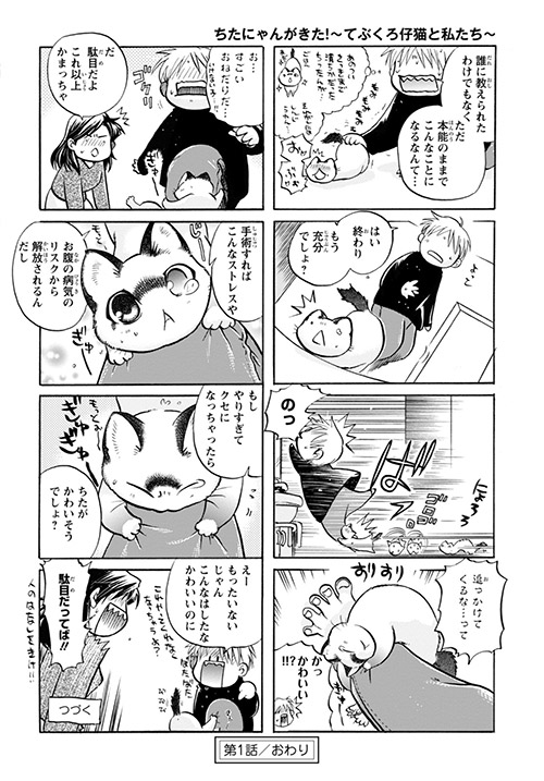 #九条友淀 先生の単行本最新作❣❣ 『ちたにゃんがきた!てぶくろ仔猫と私たち』が本日配信です❣ 左の涙目とナス体型がチャームポイントちったんの騒がしくて、面白くて、愛おしい物語!描き下ろし5P収録!! 気になる中身をチラ見せ!👀(1/2) #漫画が読めるハッシュタグ