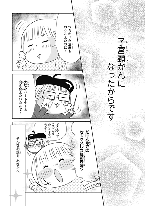 女性向けコミック最新作! #はたの有咲 先生の『子宮頸がんとセックスレス』が配信中❣ 子宮頸がんを乗り越えたはたの先生。彼女にもうひとつ大きな壁が立ちはだかる――。セックスレスに直面した夫婦の日常エッセイ!! (1/4) ▽1話無料立ち読み▽ shusuisha.com/book/499714 #漫画が読めるハッシュタグ