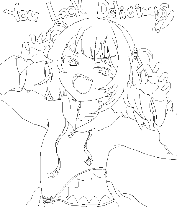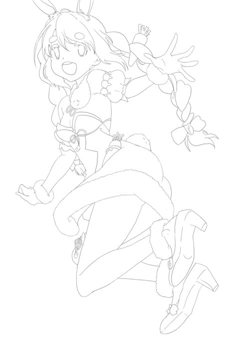 ぺこちゃんイラスト線画までできた。 あとは色塗りやー。 #ぺこらーと