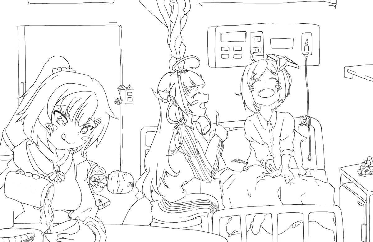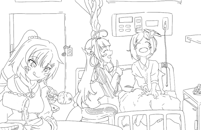 ようやくできた! かなたん、栄養たっぷりつけて早く元気になってね!! 会長、はあちゃまも復帰まであと少し! 3人とも待っとるで!!! #みかじ絵 #かなたーと #はあとArt