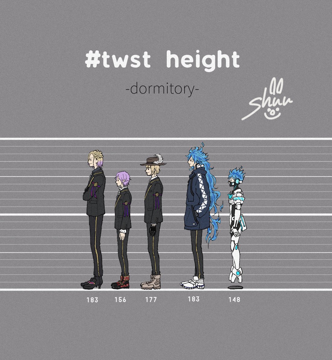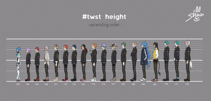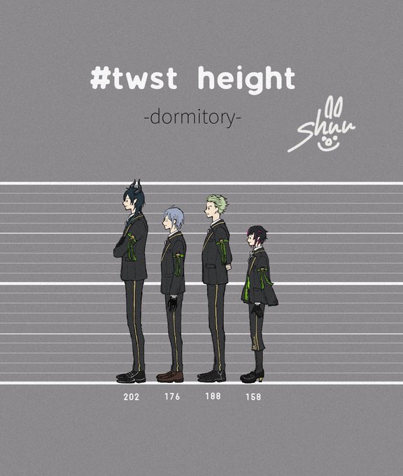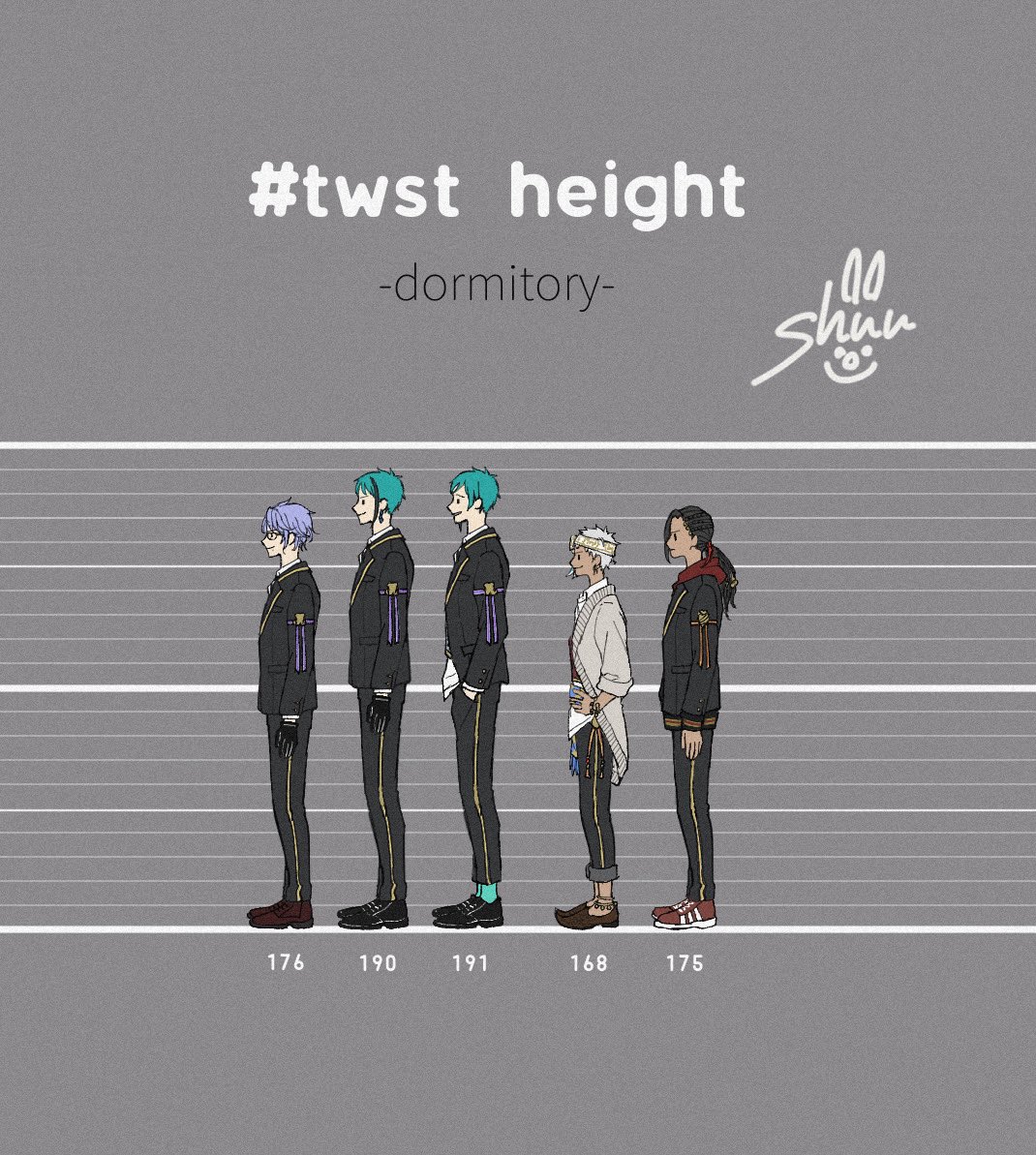 8763 37.6K みんな揃った〜🙌 ツイステみんなの身長🌱 ※マレ様はツノ込み測定解釈です🙇 #ツイステファンアート 20/05/26 00:06