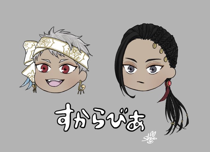 29 164 あまんぐあす めちゃくちゃ好きです ※各々のプレイ内着用カラーとコテキャイメージを参考にさせていただきました🙇♀️【再掲失礼します】 #ゑらすと #茄子画 #とらノまき 20/11/15 18:51