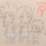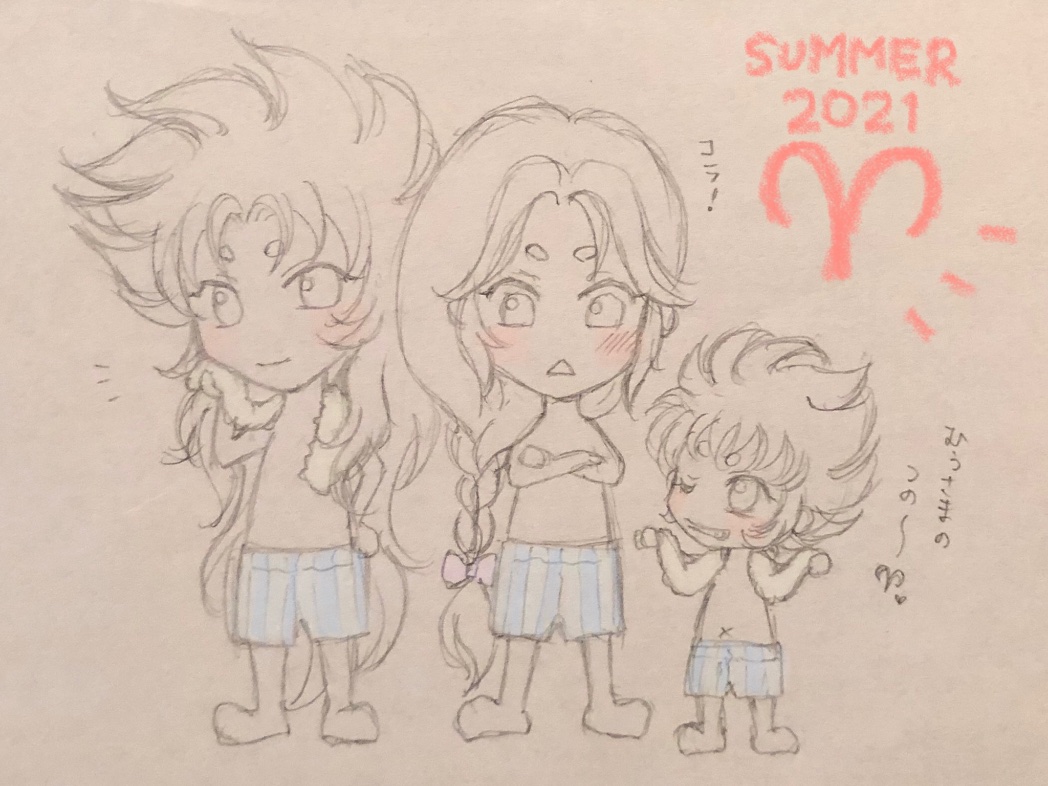 #みんなのデフォ絵と等身絵の比較が見たい しましまぱんつver.😆♐️♊️♓️♏️♈️✨ ロスとサガは最初に描いたしまぱんでしたね…☺️(なぜか感慨に浸る) アフロとミロはちょっと誘う系で💋笑 牡羊家族はムウさまのモノマネしてる貴鬼が気に入ってます🐏 (その他の星座はリプに繋げます。夜にでも…🩳)