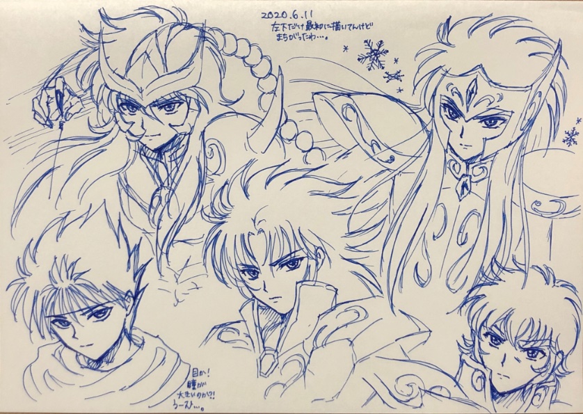 #みなさん3年前の今頃はどんな絵描いてましたか 3年前の5月といえば、ちょうどハマった頃なんですよ☺️ 1枚目は聖闘士星矢初描きのらくがき✨(アイコン老師もいます!) 2枚目は今でもわりと気に入ってるらくがき😊 一発描きなので歪みとかスミマセン😖 (※違うジャンルの人たちいます。) twitter.com/shuuuotacct/st…