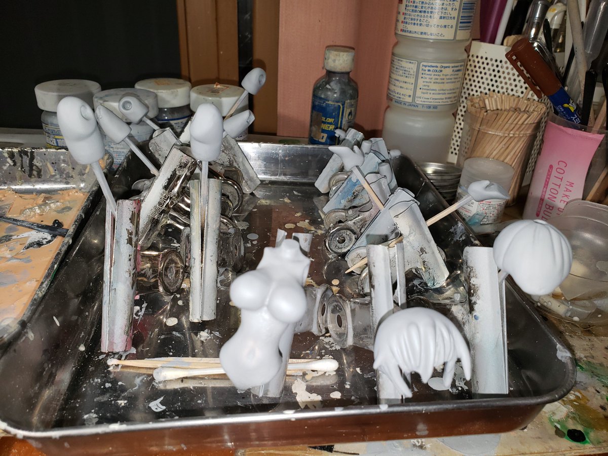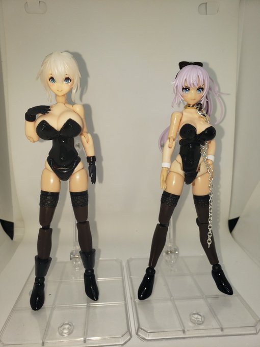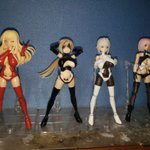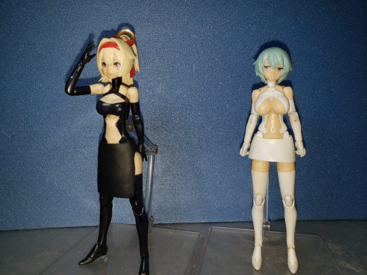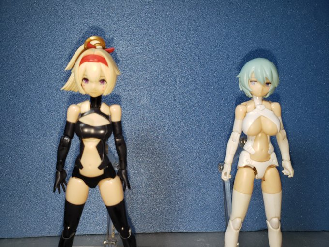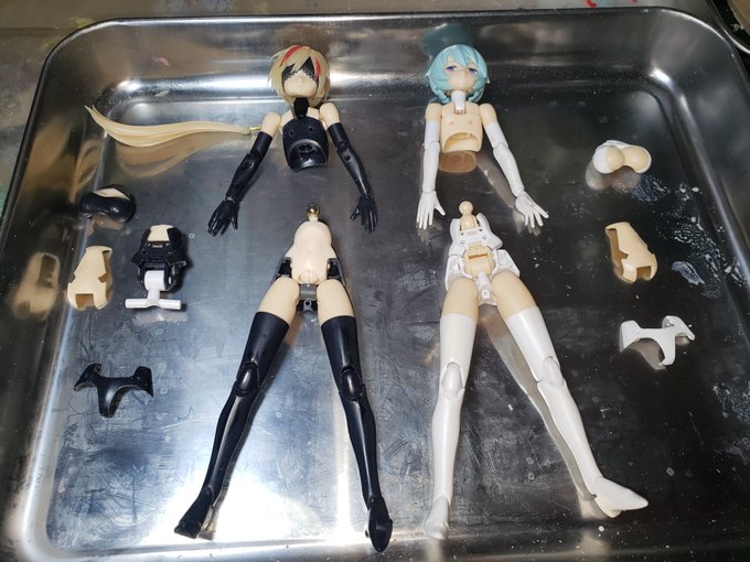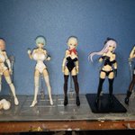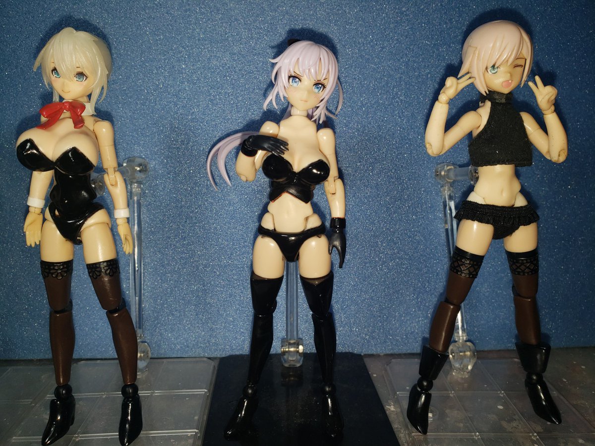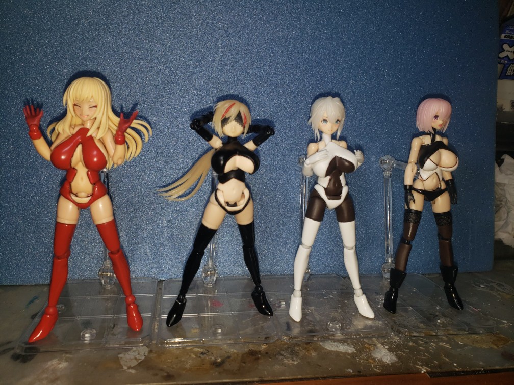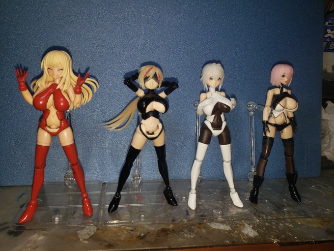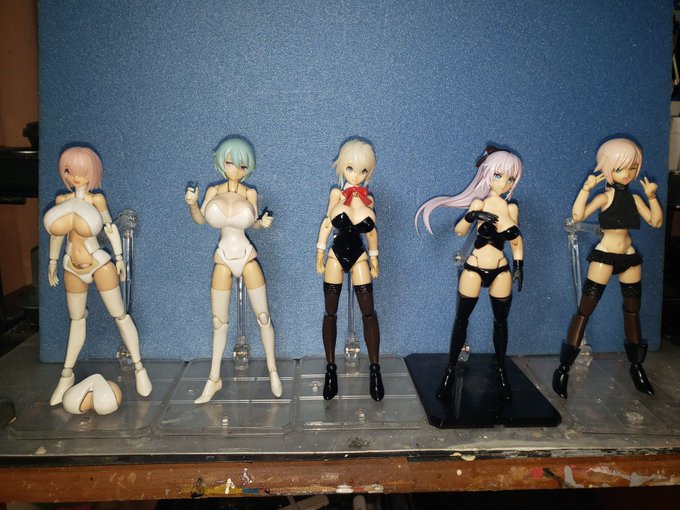 #9月になったのでフォロワーさんに自己紹介しようぜ #メガミデバイス プラモの余ったパーツとかMSGとかを流用できる、レジン複製した自作素体(?)を作っています。 塗装までした衣装タイプを並べると達成感があるなぁ・・・☺️