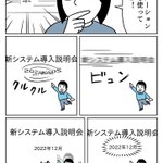 自由に座って良いはずなのに、初日から席取りするなんてフリーアドレス破綻してない?と思いました。 Tさん凄く仕事ができるので、呼び出しやすい所に座らせたかったらしい。 #コミックエッセイ