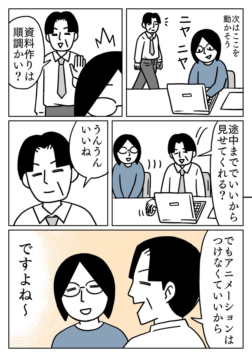 パワーポイントの使い方がよく分からなかったので、アニメーションでごまかそうとしたけど駄目でした。 #コミックエッセイ #漫画が読めるハッシュタグ #パワーポイント